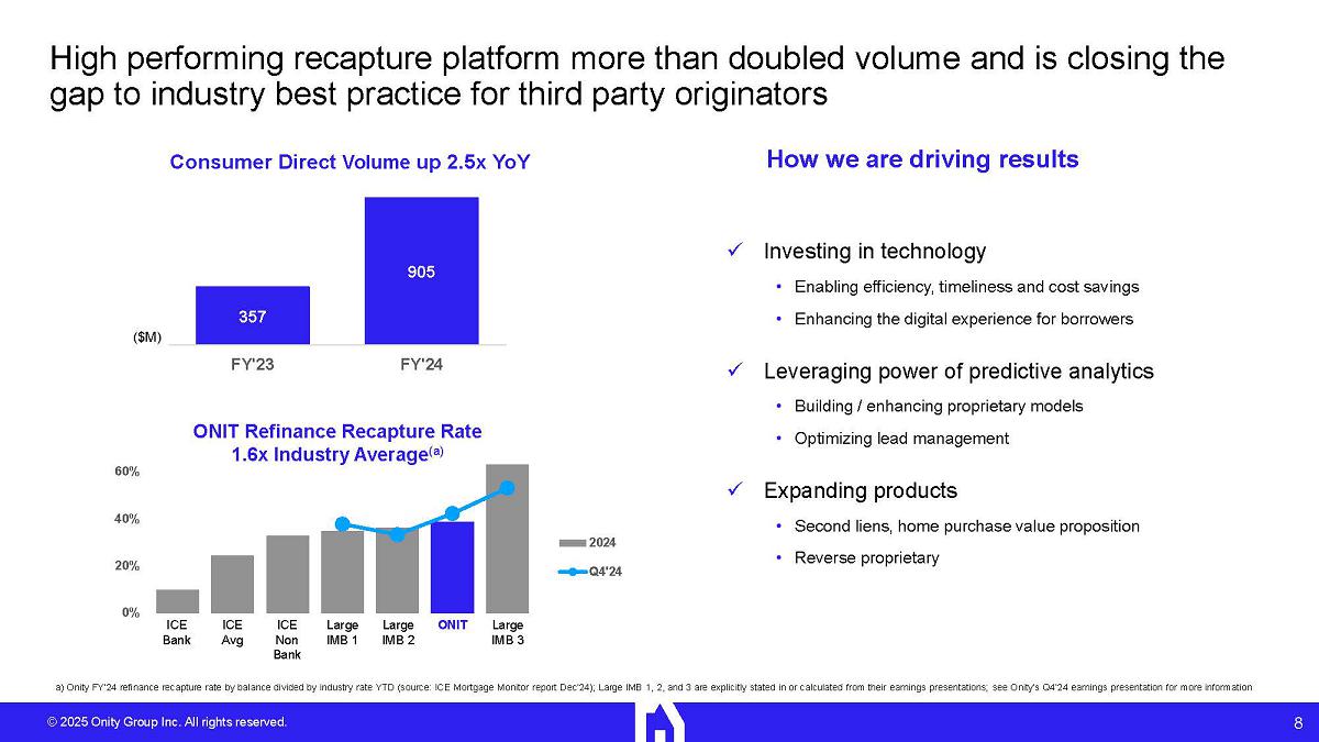 | ● | In February 2025, Onity successfully launched an improved closed-end second originations product to complement its existing offerings. Based on early indications, the Company believes this product is being well received by borrowers. | |